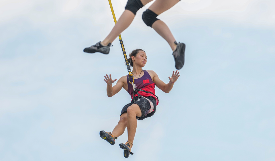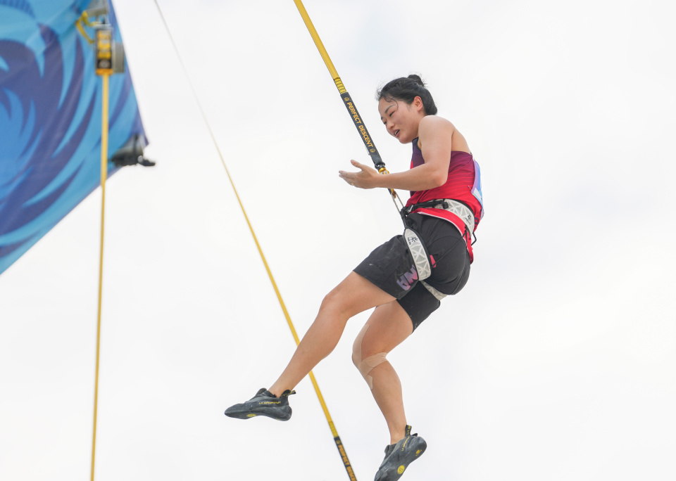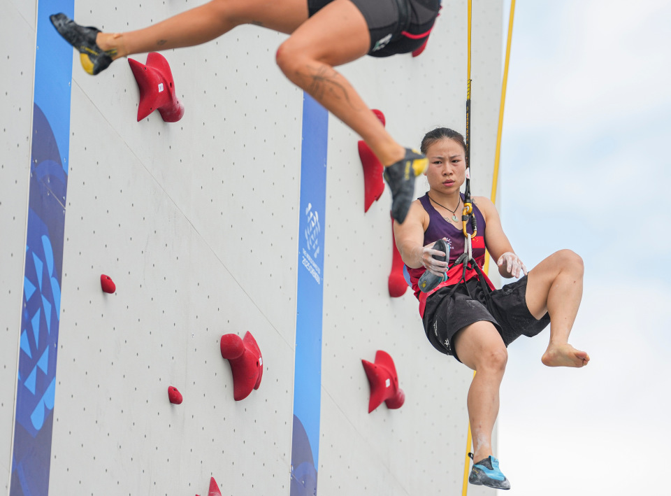 当日,在2025年成都世运会攀岩女子速度个人资格赛中,中国选手周娅菲、覃于妹、邓丽娟、张少琴晋级1/8淘汰赛。